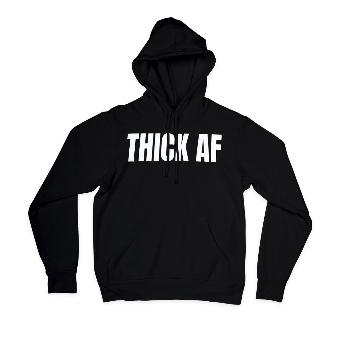 This THICK AF Hoodie may not be heavy, yet its fleece fabric ensures ultimate warmth. It also features a convenient pouch pocket, matching drawstrings, and unbeatable strength, ticking off every requirement. With double-needle stitching, a double-lined hood, and a pouch pocket, you'll be ready for anything!