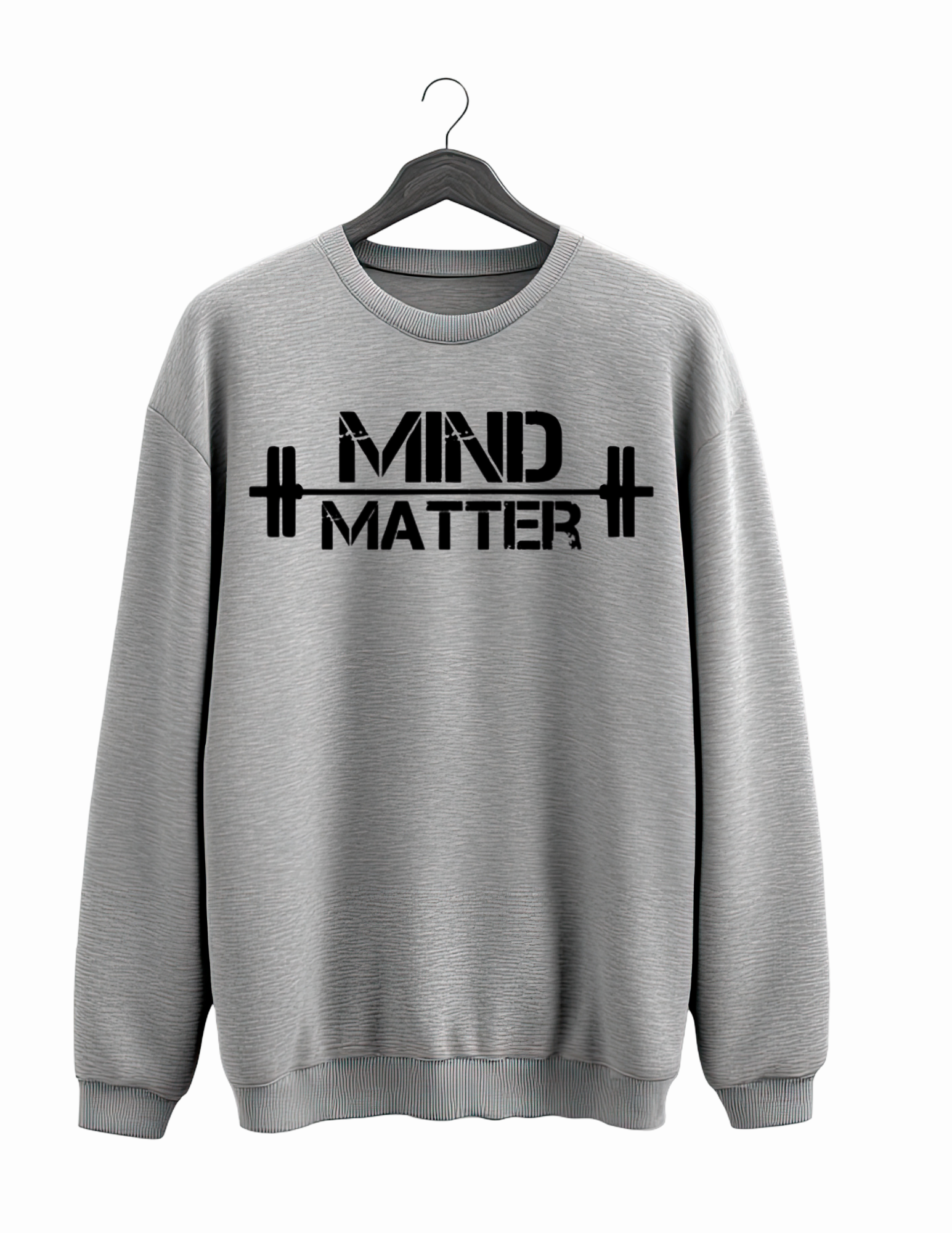 Grab the Classic Mind over Matter Sweatshirt for a cozy fit and reinforced stitching. Perfect for staying warm on chilly days and getting pumped in the gym. Comes with a choice of white or black on the back!